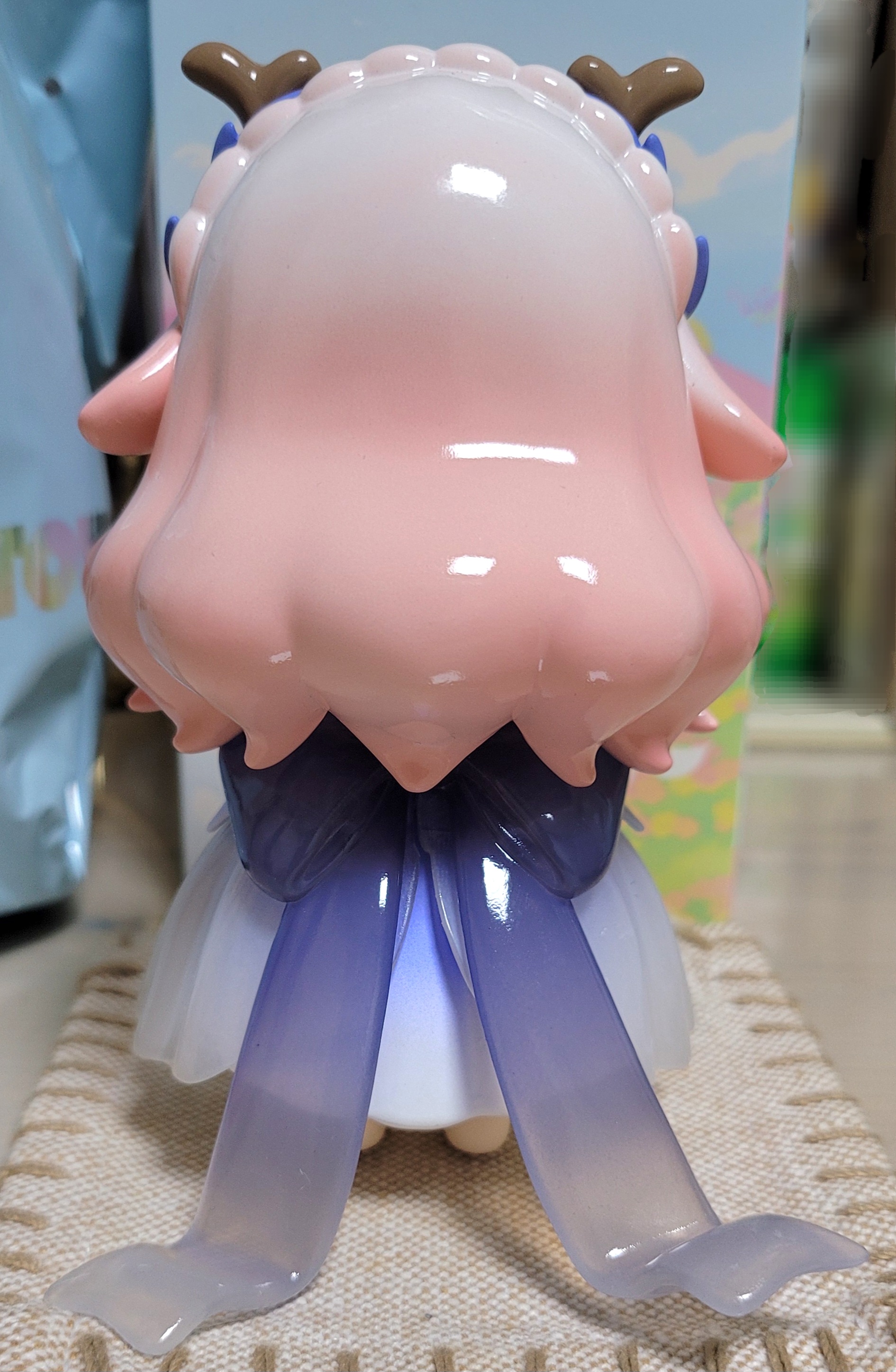 상자 옆면에서 어떤 피규어가 있는지 봤는데 핑크머리에 사슴뿔한 친구가 눈에 들어왔어요!